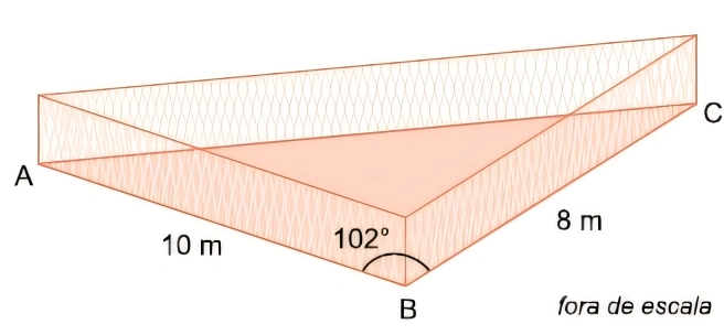 Considerando sen 102° = 0,97 e cos 102° = − 0,20, é correto concluir que o perímetro, em metros, dessa cerca é