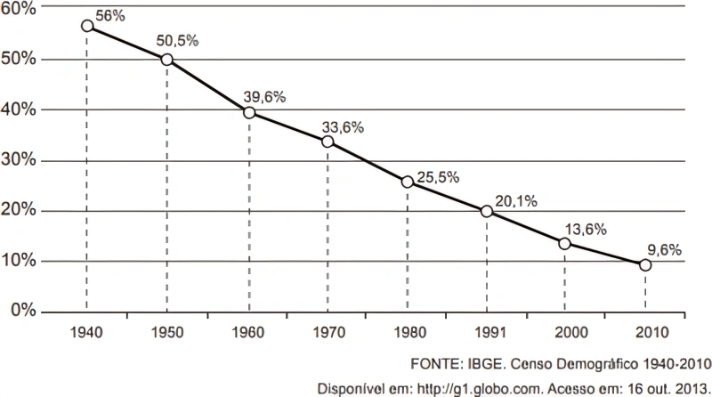 Taxa de analfabetismo das pessoas de 15 anos ou mais, no Brasil - 1940-2010
