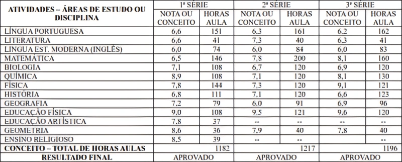 MatemáticaUFMS2019A seguir encontra-se o histórico escolar do Ensino Médio do aluno Frederico Américo, que pretende ingressar no curso de Medicina Veterinária da UFMS.