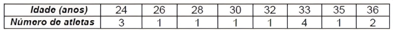 MatemáticaUPE2017As idades dos atletas que participaram da Seleção Brasileira Masculina de Basquete, convocados para a preparação dos Jogos Olímpicos 2016, variaram de 24 a 36 anos, como se pode observar na tabela a seguir: