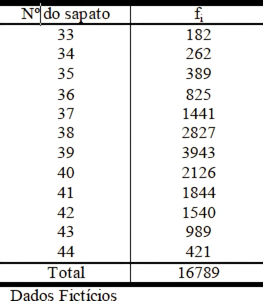MatemáticaEEAR2018A tabela abaixo mostra os números dos sapatos dos candidatos ao Curso de Formação de Sargentos 1/2018 da Força Aérea Brasileira.