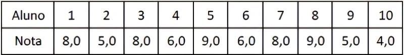 MatemáticaUNCISAL2015A tabela abaixo apresenta as notas da prova de uma disciplina.