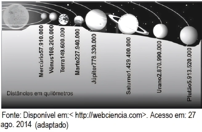 MatemáticaUEMA2015Os planetas do sistema solar do qual nosso planeta Terra faz parte realizam órbitas em torno do sol, mantendo determinada distância, conforme mostra a figura a seguir.