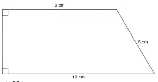MatemáticaUnisinos2016Na figura abaixo, temos um trapézio retângulo cujas bases medem 9 cm e 12 cm e cujo lado não perpendicular às bases mede 5 cm. Qual o perímetro, em cm, desse trapézio?