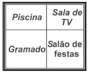 MatemáticaUNIFOR2015Um terreno quadrado foi dividido em quatro partes, como mostra o desenho abaixo. Uma parte foi destinada para a piscina, uma para o salão de festas, uma parte quadrada para sala de TV e outra, também quadrada, para o Gramado.