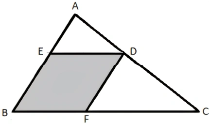 MatemáticaPUC-MG2019O proprietário do terreno representado na figura ao lado, onde AB 80 m = , BC 120 m = e BFDE é um losango inscrito no triângulo ABC, precisa cercar a parte sombreada com um muro de alvenaria.