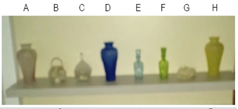MatemáticaUNCISAL2016A figura mostra o aparador da sala de jantar da Dona Heloísa, enfeitada sempre com três vasos idênticos na forma e de cores diferentes (A, D e H), duas coqueteleiras, também de formas idênticas e de cores diferentes (E e F), uma bomboniere (C), uma flor feita de escama de peixe (G) e uma cesta artificial de rosas artificiais (B).