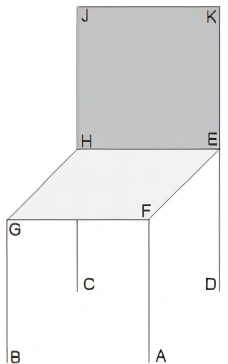 Na ilustração, o encosto (JHEK) e as pernas (AF, BG, CH e DE) são perpendiculares ao assento da cadeira.
