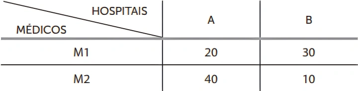 MatemáticaUSS2022Os médicos M1 e M2 atendem a seus pacientes apenas nos hospitais A e B.