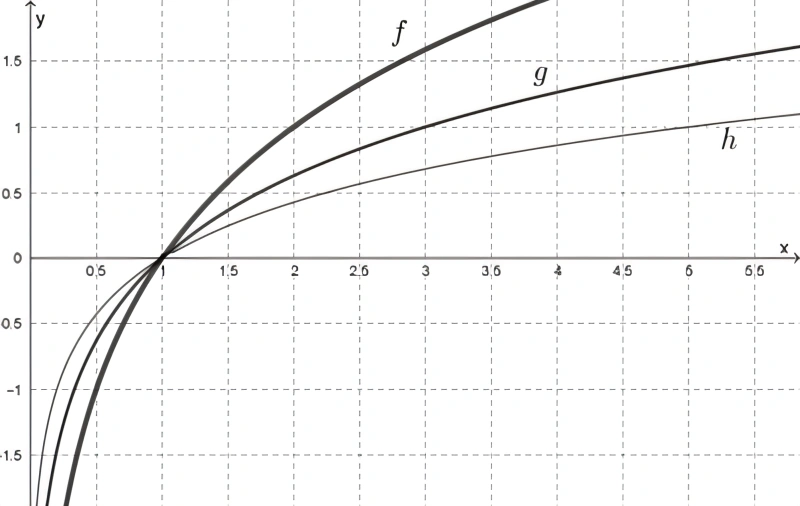 MatemáticaUFJF2019No plano cartesiano abaixo estão representados os gráficos das funções f, g e h,todas definidas no conjunto dos números reais positivos por f(x) - loga x, g(x) = logb x e h(x) = logc x.