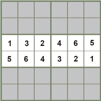 MatemáticaOBRL2017Este tabuleiro de Sudoku é um grid 6 × 6 subdividido em 6 caixas 2 × 3. Para resolver o enigma é preciso colocar em cada linha, coluna e caixa 2 x 3 os números de 1 a 6.