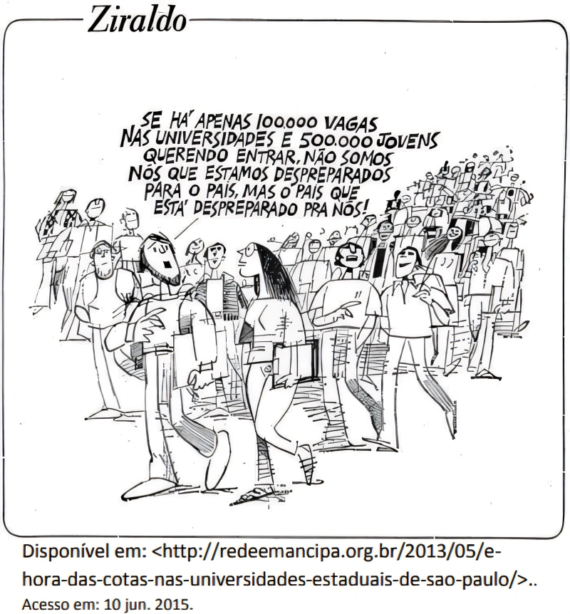 No Texto, 100.000 é o número de vagas oferecidas nas universidades e 500.000 o número de jovens querendo entrar na universidade. Para que essa proporção seja de ¾, o número de vagas a mais que deverão ser ofertadas, mantendo-se o mesmo número de jovens desejando ingressar na universidade, é