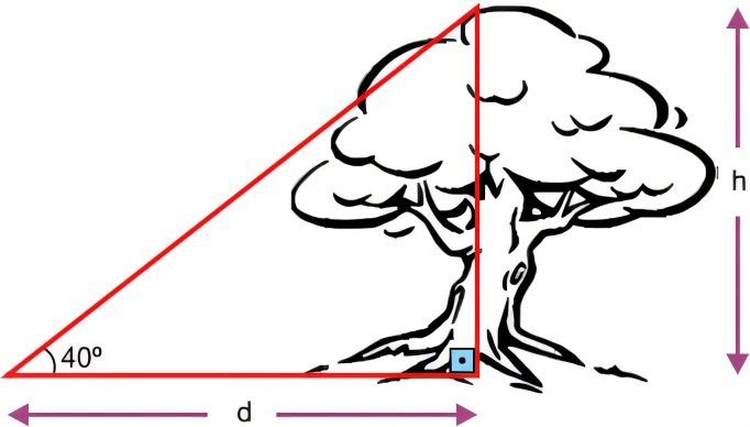 MatemáticaUNINOVE2018Tales está a d metros de uma árvore. Ele sabe que a altura h da árvore está entre 4,20 m e 5,04 m e que a linha reta entre o ponto, no chão, em que ele está e o topo da árvore forma um ângulo de 40º com o chão, conforme a figura.