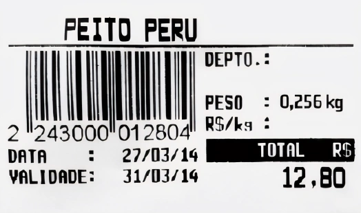 MatemáticaUERJ2015Na imagem da etiqueta, informa-se o valor a ser pago por 0,256 kg de peito de peru