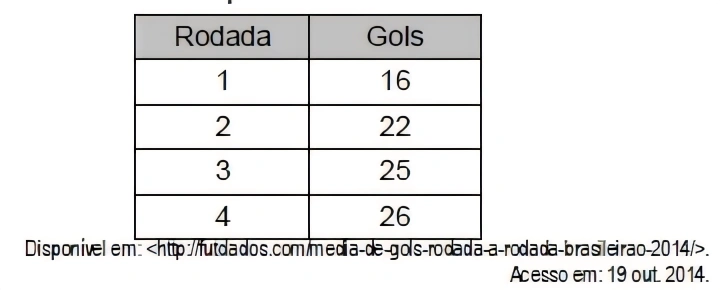 MatemáticaUNCISAL2015A tabela abaixo apresenta os números de gols das quatro primeiras rodadas do campeonato brasileiro de 2014.