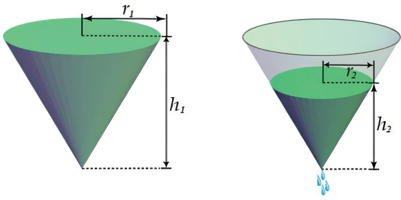 MatemáticaIFSulDeMinas2018Um determinado tanque subterrâneo tem formato de um cone circular reto, e, recentemente, apresentou um vazamento, de forma que, a cada hora, 100 L de água vazam do tanque.