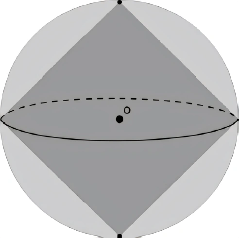 MatemáticaUFAM2015A figura a seguir mostra um par de cones de mesma base e altura inscritos em uma esfera de raio 1cm. O volume de cada cone é em cm3 igual a: