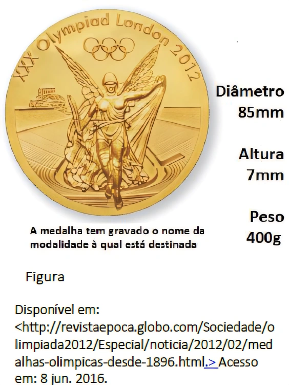 MatemáticaIFRN2016Com base nos dados apresentados na Figura, o volume ocupado pela medalha, em cm³, aproximadamente, é
