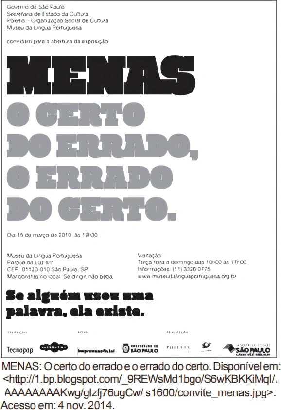 PortuguêsUEFS2015Quanto à análise do cartaz de uma exposição do Museu de Língua Portuguesa, é correto afirmar: