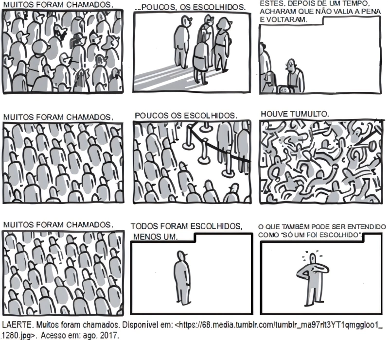 A tira de Laerte apresenta uma quebra de expectativa que se explicita por meio