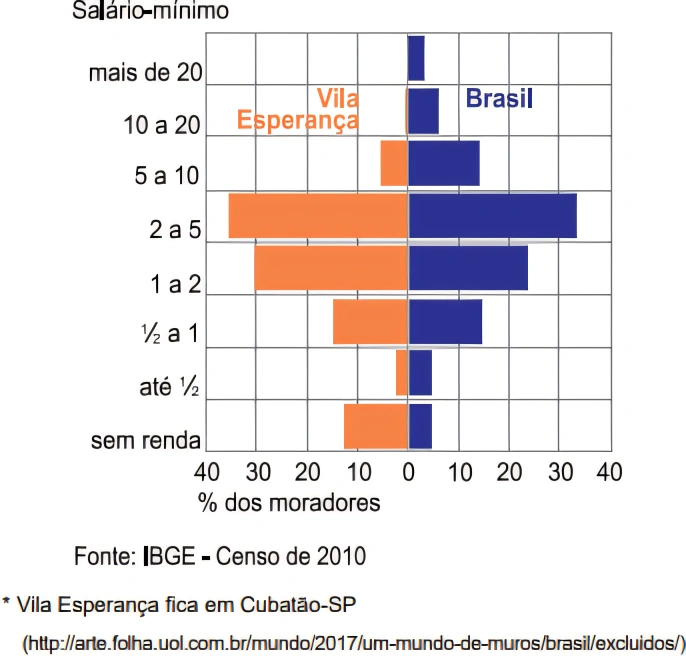 De acordo com o infográfico, conclui-se corretamente que, na Vila Esperança, assim como no Brasil,