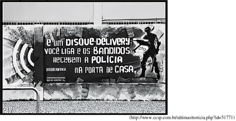 A imagem acima é uma peça que compõe uma campanha para incentivar a população carioca a recorrer ao serviço Disque-Denúncia. Sobre a estratégia argumentativa empregada para o convencimento do público-alvo, pode-se afirmar que ela