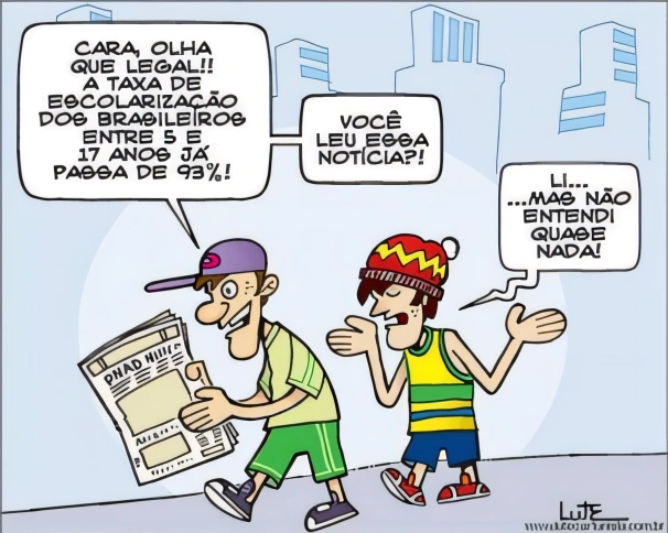 Nosso problema linguístico são 5 milhões de jovens entre 15 e 17 anos que estão fora da escola. Nosso problema são os elevados índices de evasão escolar. Nosso problema é termos ainda algo em torno de 12% de analfabetos na população adulta. Nosso problema é o tamanho do analfabetismo funcional, isto é, a quantidade daqueles que, embora frequentem ou tenham frequentado a escola, não conseguem ler e entender um texto medianamente complexo.