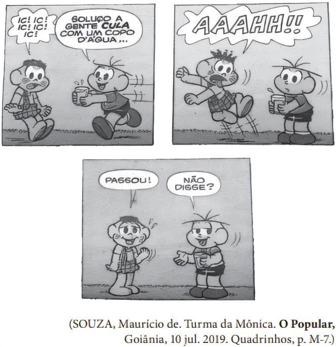 Há diferentes crenças populares que prometem a cura para o soluço. Os quadrinhos mostram que o personagem Cascão curou-se desse espasmo.