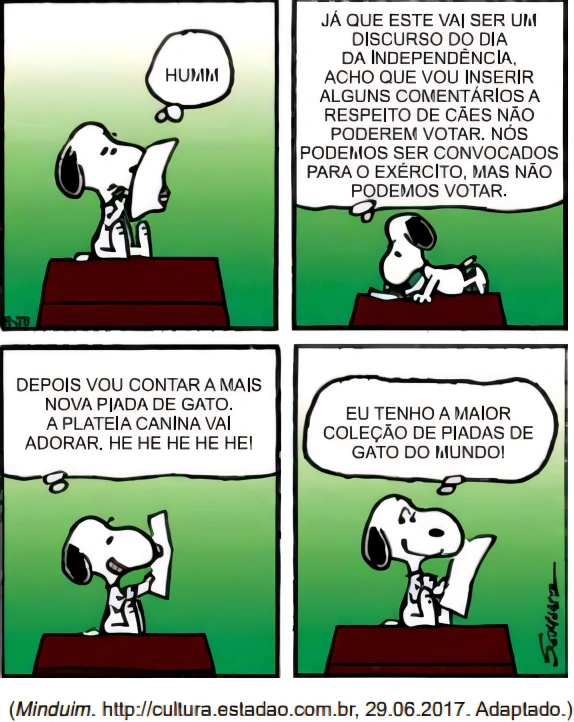 Leia a tirinha de Charles M. Schulz para responder a questão.