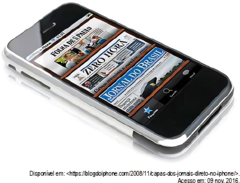 O editor digital do jornal The Economist, Tom Standage, afirmou em entrevista, publicada em Carta Capital, 08/11/2011, que já é possível prever “o ocaso do jornal impresso”. Considerando a opinião de Tom Standage e a figura do telefone celular em destaque, pode-se concluir que