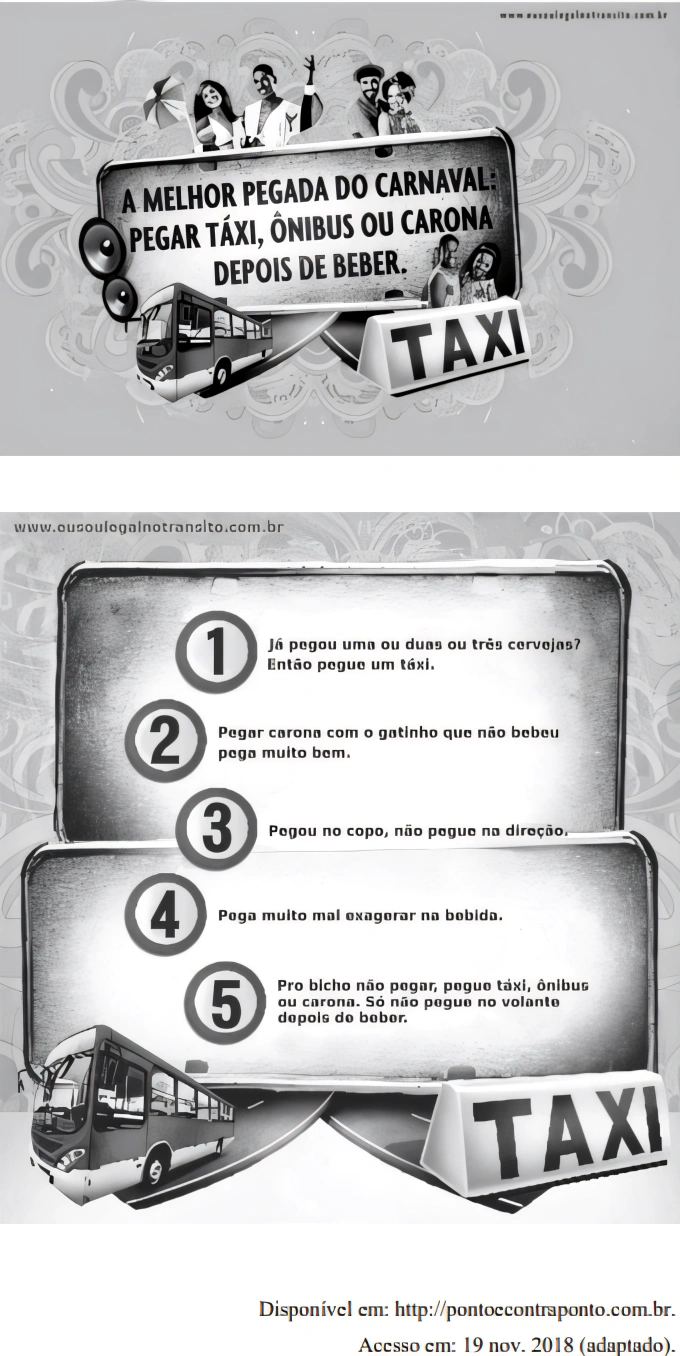 O emprego de uma linguagem coloquial nos cartazes da campanha “Eu sou legal no trânsito”, lançada pelo Departamento Nacional de Trânsito no Carnaval de 2011, é adequado a essa situação de uso social da linguagem porque, por meio dessa variedade linguística,