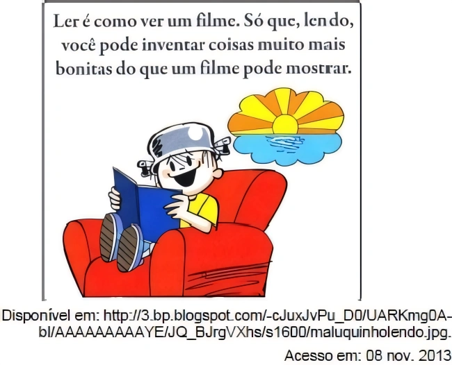 O Menino Maluquinho é um personagem criado pelo cartunista Ziraldo. Sem alterar o sentido da relação entre as orações apresentadas no cartum acima, a locução “só que” pode ser substituída por
