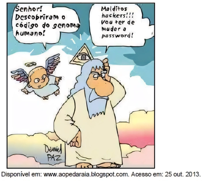 Nesse cartum, a linguagem utilizada pelos personagens evidencia a