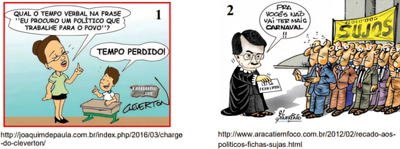 A charge é um gênero jornalístico e, normalmente, reflete situações do cotidiano. Ao comparar as duas charges, pode-se concluir que: