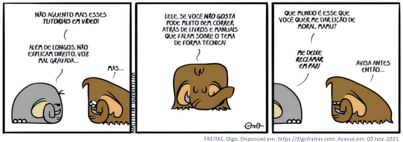 Com base na tirinha Mamu e Le Fan, de autoria de Digo Freitas, assinale a alternativa correta.