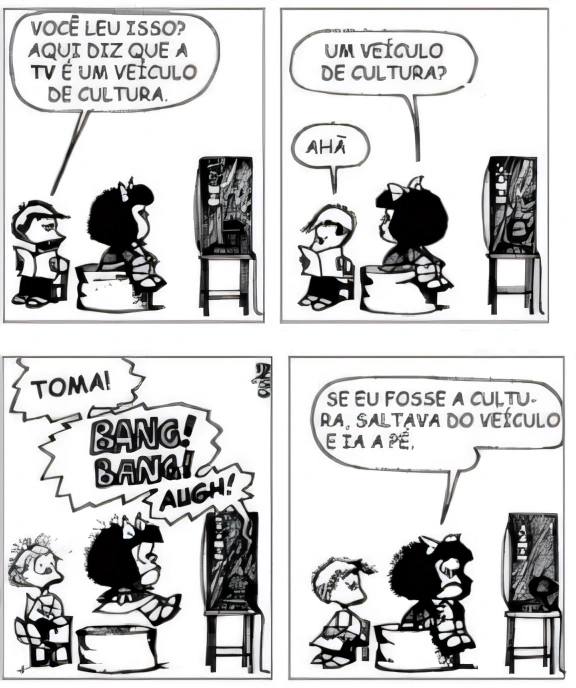 Observe o diálogo existente entre a afirmação dada e a tirinha a seguir; em seguida marque a opção que não está de acordo com as mensagens aqui expostas: