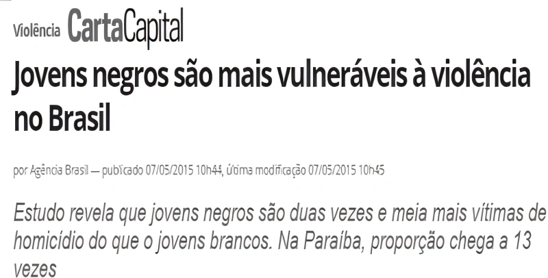 O indicador inédito incorpora na dimensão da violência a desigualdade racial e mostra que a cor da pele e o risco de exposição à violência estão relacionados. Diante destas informações identifique a assertiva que traz informações VERDADEIRAS relacionadas à problemática levantadas pelo estudo.