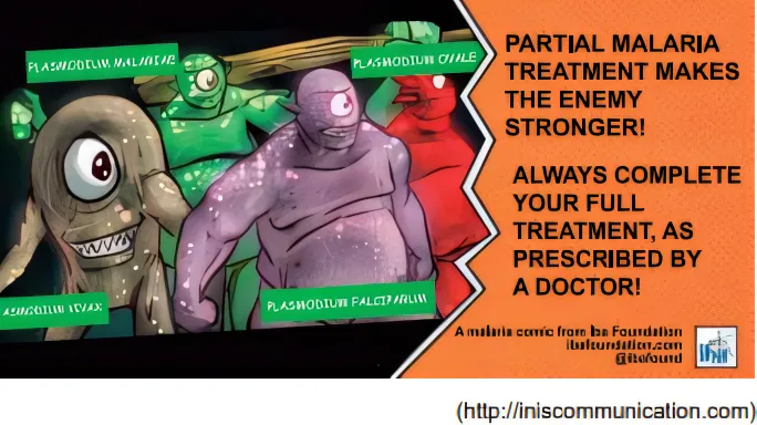 According to the comic strip, malaria treatments should be