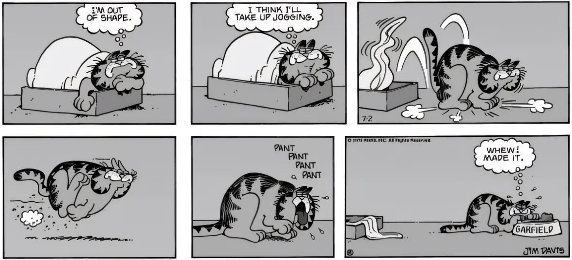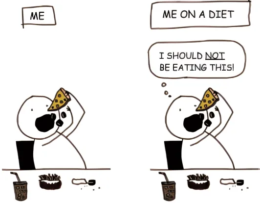 Para o cartunista, a diferença entre estar ou não estar de dieta limita-se a um sentimento de