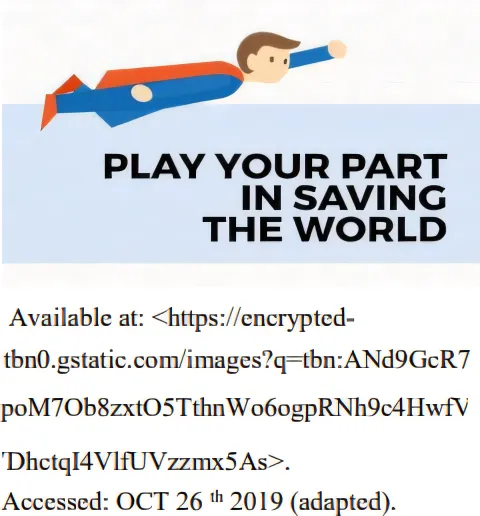 In TEXT, in the sentence “play your part in saving the world”, the author