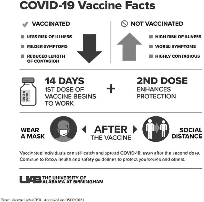 O post da Universidade do Alabama informa que após tomarem a segunda dose da vacina contra a COVID - 19 as pessoas: