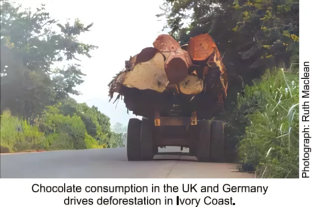 The research lays bare the direct links between consumers and the loss of forests across the planet. Chocolate consumption in the UK and Germany is an important driver of deforestation in Ivory Coast and Ghana, the scientists found, while beef and soy demand in the US, European Union and China results in forest destruction in Brazil.