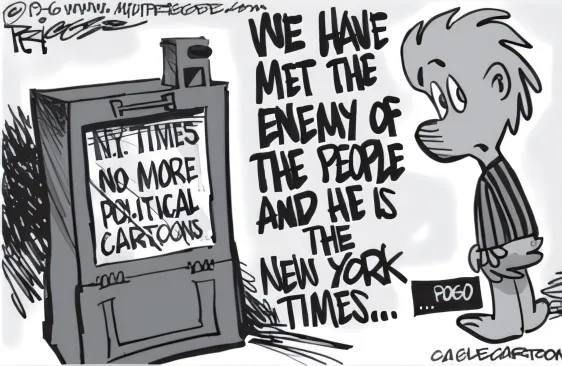 A tradução correta para a sentença “We have met the enemy of the people and he is The New York Times...” é: