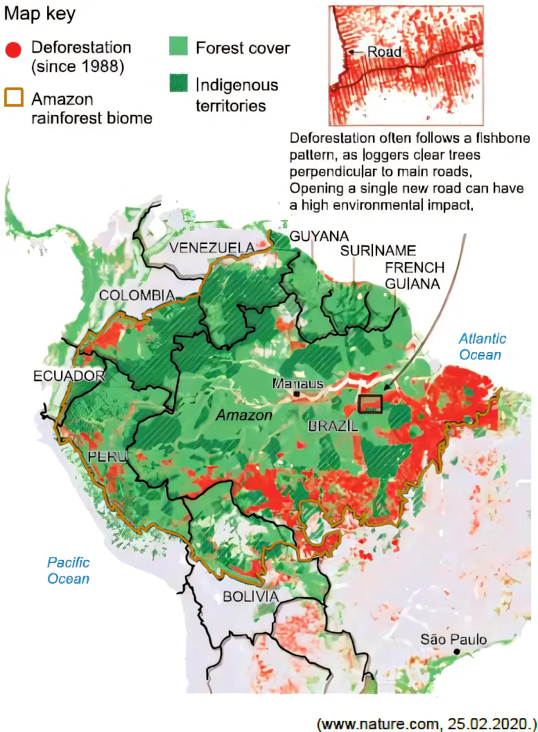 The country covered by the Amazon rainforest presented in the map that displays less signs of forest clearing is