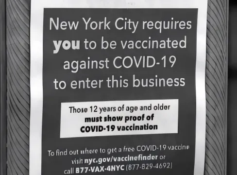The attack comes as New York City, this week, became to first major U.S. city to require hospitality, entertainment, and fitness businesses to ask customers for proof of vaccination to gain access