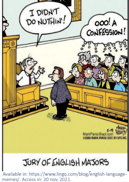 Muitos textos da Internet relacionados ao humor são usados como propulsores da aprendizagem, especialmente de língua estrangeira. Observe o que segue.