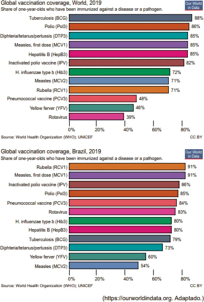The aim of text and the chart “Global Vaccination Coverage, Word, 2019” is to show