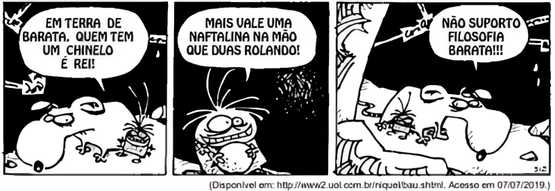 A tira a seguir, do rato Níquel Náusea, de Fernando Gonsales, é referência para aquestão.