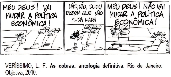 IOSCHPE, G. Revista Veja. 2014.Para sustentar a argumentação são utilizados variados recursos. A seleção léxico-semântica utilizada pelo autor para sustentar a argumentação marca o emprego de uma imagem crítica, com um tom