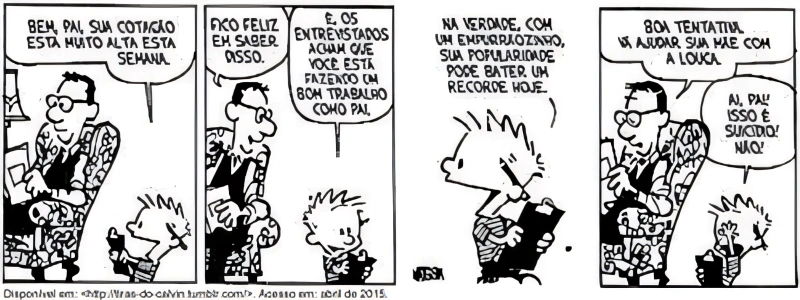 Leia a tirinha a seguir e marque a opção CORRETA.